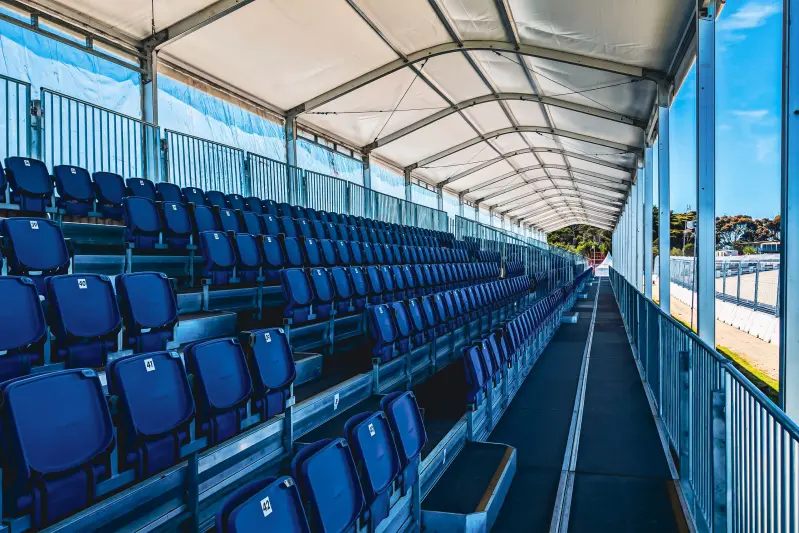 The Doohan Pavilion at the Turn 2, overlooking the Southern Loop apex. Enjoy sheltered seating in this fan-favourite grandstand, plus access to nearby premium amenities including a private bar and dedicated TV screens