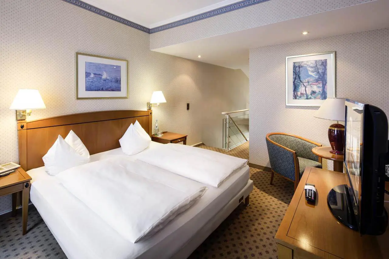 3+ nights in top 4* Chemnitz hotel 25 minutes from Sachsenring; guide, opening dinner, track transfers, welcome pack. Split level suite with king bed & sofa; roof terrace