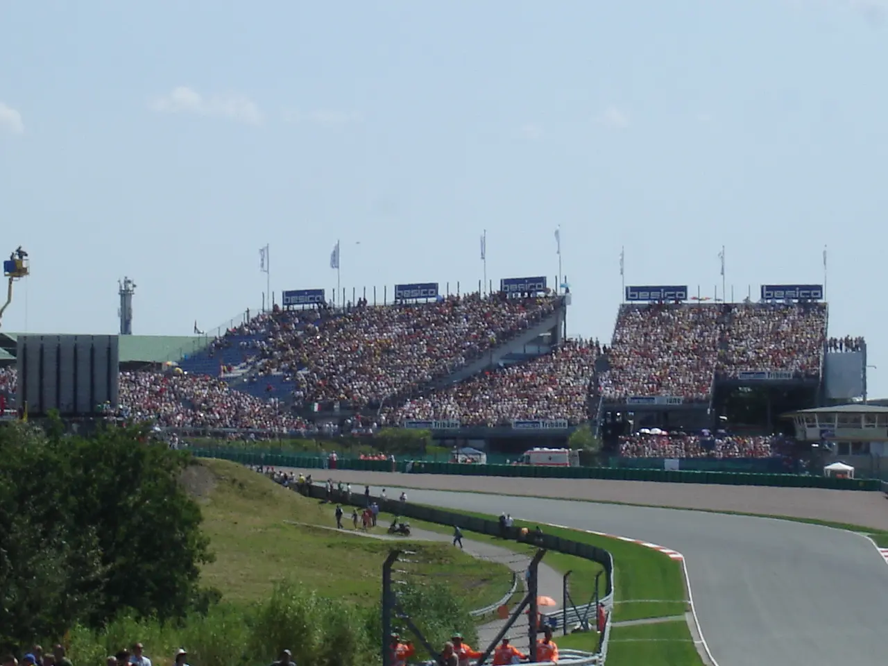 T1 Main granstand at start/finish. TV view.